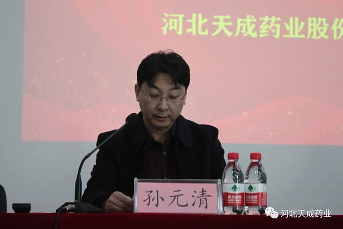 天成藥業(yè)總經(jīng)理兼渤海分公司總經(jīng)理孫元清宣讀《2022年度先進(jìn)個(gè)人賀先進(jìn)集體評選結果》