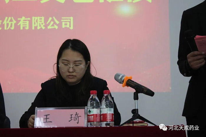 副總經(jīng)理、渤海分公司常務(wù)副總經(jīng)理田長(cháng)友宣讀天成藥業(yè)及天成藥業(yè)渤海分公司2023年度干部任命