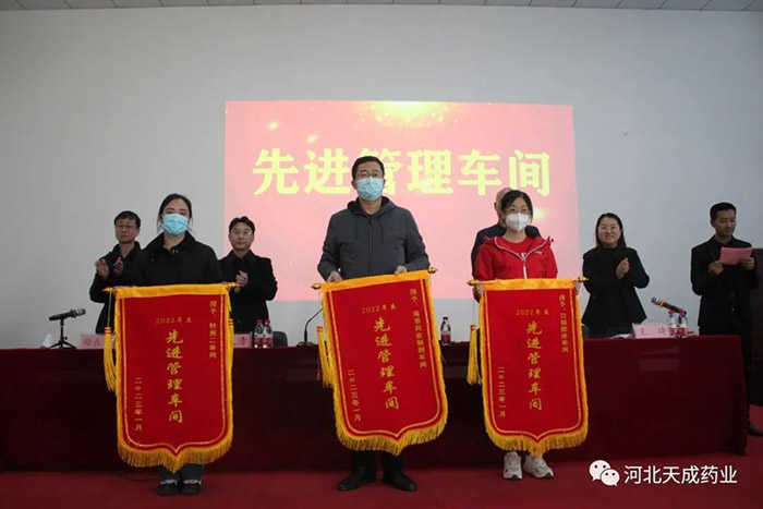 卯門(mén)生紫氣,兔歲報新春!告別難忘的2022,迎來(lái)全新的2023,回首過(guò)去的這一年奮斗路,展望天成新前程!2023年2月4日,天成藥業(yè)2022年度表彰大會(huì )暨迎元宵節文藝匯演,在三分廠(chǎng)活動(dòng)室隆重舉行!