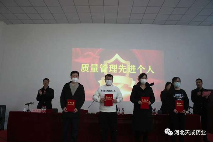 天成藥業(yè)常務(wù)副總經(jīng)理王琦宣讀《對生產(chǎn)復方對乙酰氨基酚片表現突出人員表彰決定》