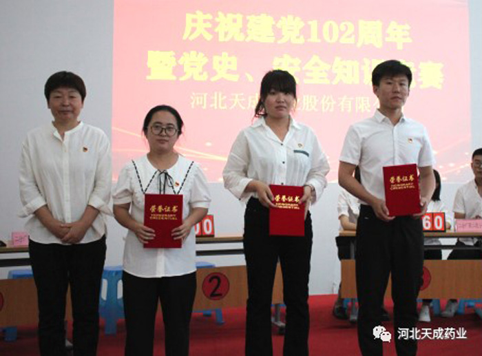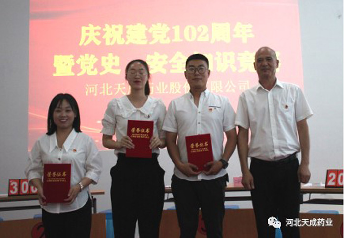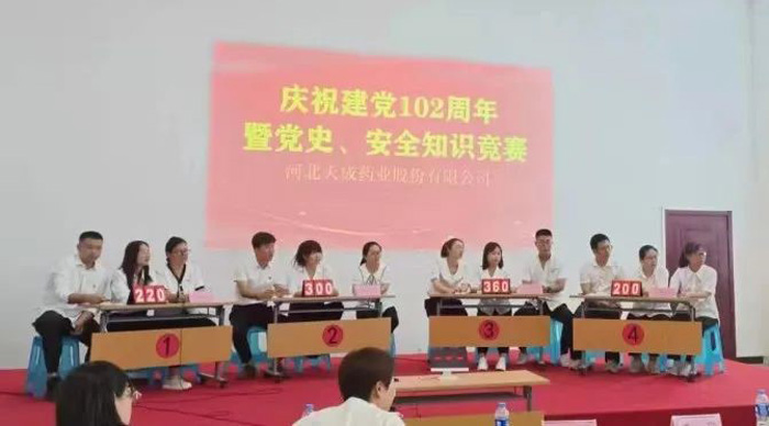 守望初心勇?lián)?,篤定前行綻芳華 | 河北天成藥業(yè)開(kāi)展慶祝建黨102周年優(yōu)秀黨員及先進(jìn)黨小組表彰大會(huì )暨主題黨史及安全知識競賽活動(dòng)