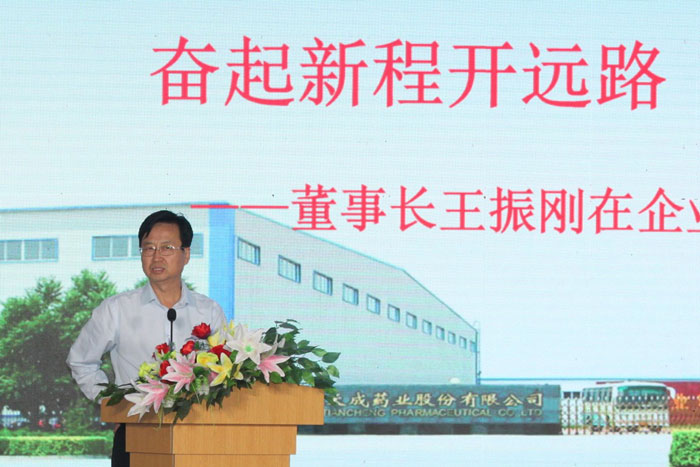 公司董事長(cháng)王振剛、常務(wù)副總經(jīng)理王顥,天成藥業(yè)總經(jīng)理兼渤海分公司總經(jīng)理孫元清,天成藥業(yè)常務(wù)副總經(jīng)理王琦出席活動(dòng),天成藥業(yè)、道恩藥業(yè)科室后勤人員,全體中層及以上干部現場(chǎng)參會(huì ),渤海分公司、天津應天成科技有限公司不能到現場(chǎng)的干部員工通過(guò)視頻鏈接網(wǎng)上參會(huì )。