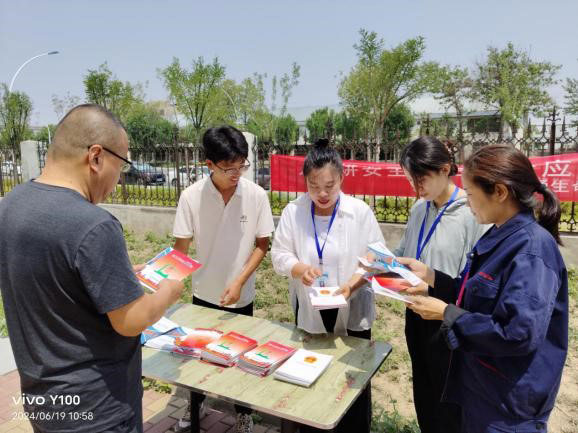 活動(dòng)期間,公司在食堂電視上循環(huán)播放安全主題宣傳教育片、生命通道科普片;二、三分廠(chǎng)廠(chǎng)區顯要位置懸掛起印有“人人講安全,個(gè)個(gè)會(huì )應急——暢通生命通道”的宣傳條幅,營(yíng)造濃厚的安全氛圍;開(kāi)展安全生產(chǎn)專(zhuān)題培訓,集中觀(guān)看典型安全生產(chǎn)事故教育警示片,以案為鑒,提升安全意識,并現場(chǎng)閉卷考試;安監部和人資部在食堂門(mén)口設立宣傳講解臺,抓住員工就餐的時(shí)機為其發(fā)放安全生產(chǎn)手冊、安全生產(chǎn)法律法規、工會(huì )維權60問(wèn)等,耐心細致地講解安全生產(chǎn)理念和行為規范,宣傳安全生產(chǎn)政策法規、安全科普常識、職業(yè)健康知識、應急處置等,現場(chǎng)回答員工們關(guān)心的問(wèn)題。