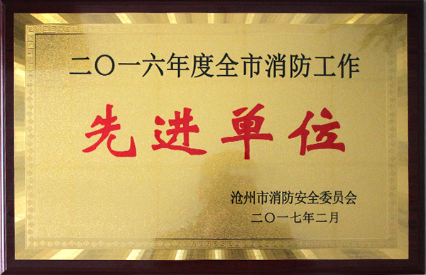 近日,滄州市消防安全委員會(huì )召開(kāi)2016年度全市消防工作先進(jìn)單位和先進(jìn)個(gè)人的表彰大會(huì )。包括我公司在內全市有61家單位和70位個(gè)人受到表彰。