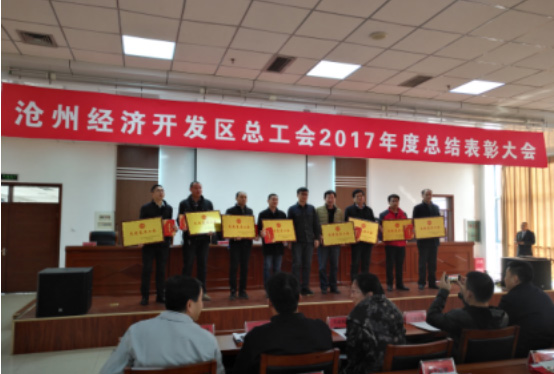 2018年3月6日上午,滄州經(jīng)濟開(kāi)發(fā)區總工會(huì )召開(kāi)2017年度模范及先進(jìn)工會(huì )組織的總結表彰大會(huì )。