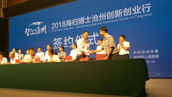 8月8日,“智匯滄州——2018海歸博士滄州創(chuàng )新創(chuàng )業(yè)行”簽約儀式在滄州國際會(huì )議中心舉行。董事長(cháng)兼總經(jīng)理王振剛應邀參加盛會(huì )并與兩名海歸博士成功簽約。