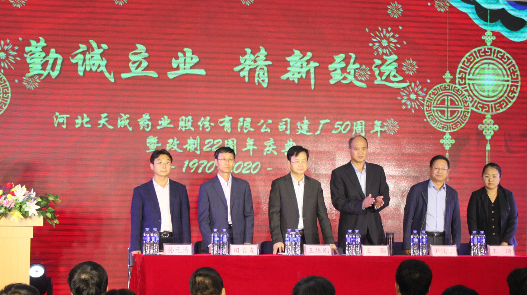 金秋十月,碩果盈枝,承載豐收的喜悅,不僅迎來(lái)了祖國71周年華誕和中秋佳節,也迎來(lái)了公司建廠(chǎng)50周年、改制22周年的紀念日。為更好地紀念歷史,歌頌新老天成人的先進(jìn)事跡,矢志不移地傳承“制好藥 為人民”的企業(yè)經(jīng)營(yíng)宗旨,弘揚“勤誠立業(yè) 精新致遠”的企業(yè)核心文化,9月29日,公司在三分廠(chǎng)活動(dòng)室舉辦公司建廠(chǎng)50周年暨改制22周年慶典大會(huì )。公司董事會(huì )成員、天成藥業(yè)、道恩藥業(yè)、渤海分公司、天津藥物研究院的干部員工以及部分退休老干部齊聚一堂,共同參加慶典。