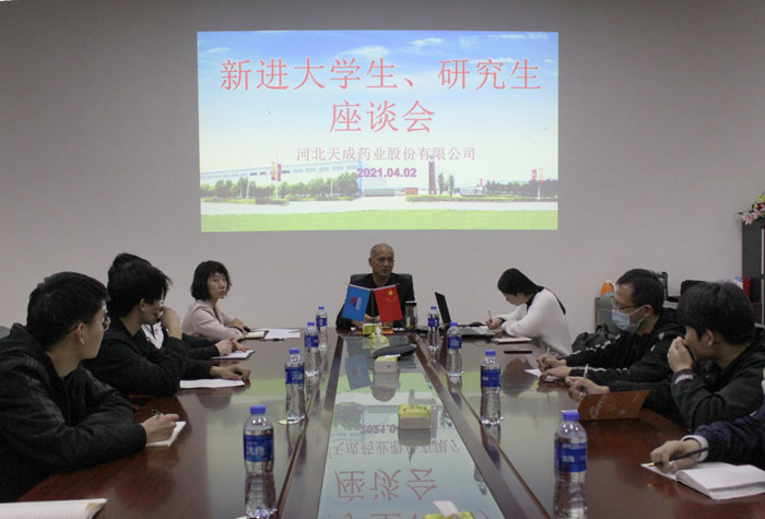 座談會(huì )在輕松、愉悅的氛圍中進(jìn)行,來(lái)自不同地方、不同學(xué)府的40位青年大學(xué)生結合自身學(xué)習經(jīng)歷進(jìn)行了簡(jiǎn)單的自我介紹。“擊水三千已揚帆,鵬程萬(wàn)里正當時(shí)”,在聽(tīng)取新進(jìn)大學(xué)生的發(fā)言后,顥總首先對大家加入天成藥業(yè)表示熱烈歡迎,并向大家講述天成藥業(yè)五十年的發(fā)展歷程及企業(yè)的發(fā)展戰略,讓大家對企業(yè)有了更為深入的了解。顥總強調,藥品關(guān)系到人類(lèi)生命健康,他要求大家要有愛(ài)心、有責任心,要認真學(xué)習《藥品管理法》,這體現出一個(gè)合格制藥人的責任。