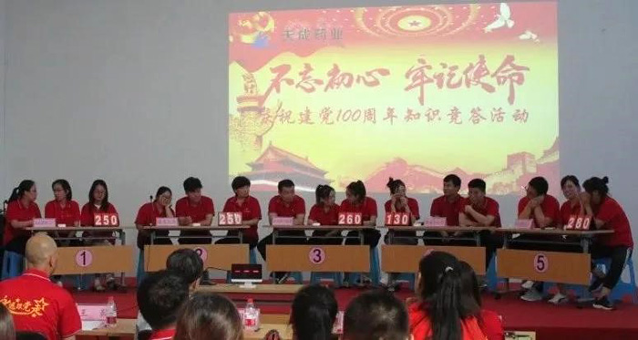 6月29日下午,中共河北天成藥業(yè)股份有限公司黨總支表彰大會(huì )暨黨史知識競答活動(dòng)在三分廠(chǎng)黨員活動(dòng)室隆重舉行。黨總支部正式黨員、預備黨員、入黨積極分子和已寫(xiě)入黨申請書(shū)人員以及部分黨外群眾共計90余人參加,滄州市經(jīng)濟技術(shù)開(kāi)發(fā)區企業(yè)黨委負責人曲明利受邀參加此次活動(dòng)。