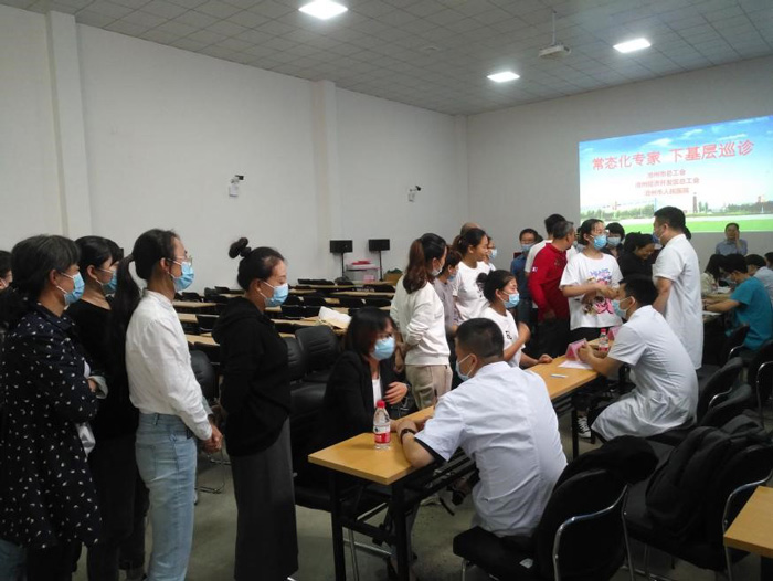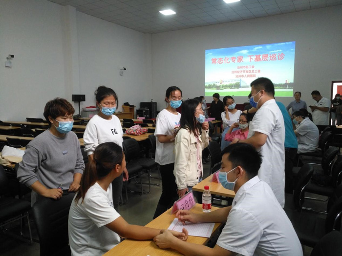 活動(dòng)開(kāi)始,滄州市總工會(huì )田瑩副科長(cháng)發(fā)表講話(huà),她指出,滄州市總工會(huì )通過(guò)建設“職工健康生活室”,聯(lián)合滄州市人民醫院定期下基層開(kāi)展健康大課堂、義診等活動(dòng),為職工送去科學(xué)的營(yíng)養保健指導,對患病的職工提出相應的治療建議,既滿(mǎn)足了職工健康的新需求,又使之成為了關(guān)心關(guān)愛(ài)職工健康的新舉措。她強調“常態(tài)化專(zhuān)家下基層巡診”活動(dòng)將會(huì )持續搞下去,讓職工參與度更高,惠及更多的職工。
