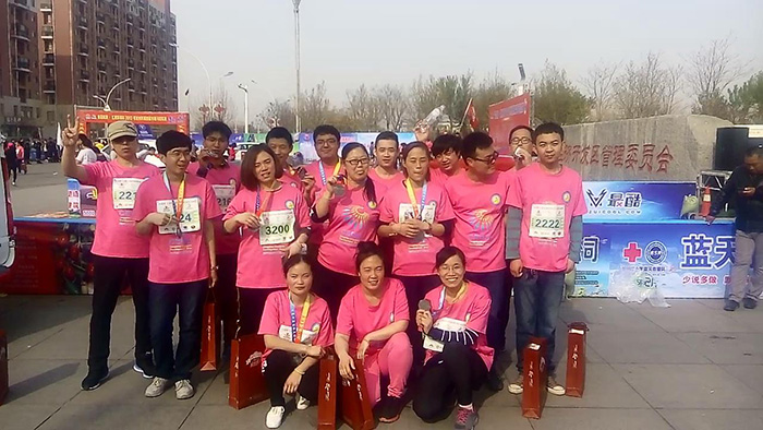 2017年4月9日,滄州市第四屆半程(含迷你)馬拉松賽圓滿(mǎn)結束,此次賽事,由滄州市長(cháng)跑協(xié)會(huì )和開(kāi)發(fā)區管委會(huì )共同承辦。我公司領(lǐng)導十分重視,積極組織,來(lái)自生產(chǎn)車(chē)間和后勤科室的18名健兒踴躍參加。女子組有:葉勇新、馮坤 、梁靜微 、托穎虹 、王文華 、張桂鳳、王春芬;男子組有:盛勇軍、唐廣勇、伊銀超、馬鵬舉、蔣觀(guān)榮 、馬忠杰、劉毅鵬、李東亮、劉建營(yíng)、劉振楠、鄭福貴。他們積極參與,認真準備,在賽場(chǎng)上放飛青春與激情,展現了天成人高昂的斗志與活力。經(jīng)過(guò)與2000多人的激烈角逐,來(lái)自二分廠(chǎng)輸液二車(chē)間的張桂鳳獲得了女子迷你馬拉松賽的第9名的好成績(jì)。